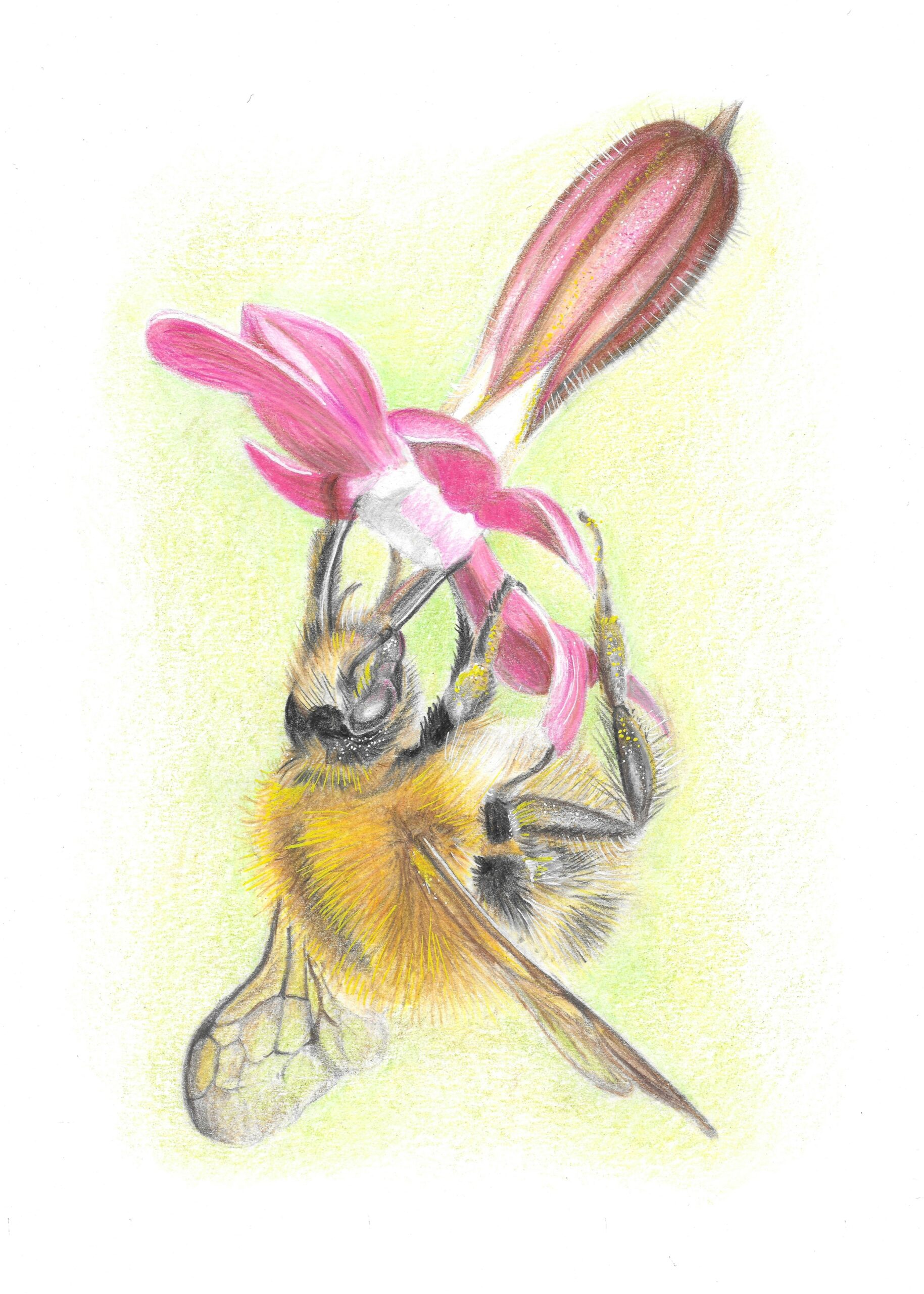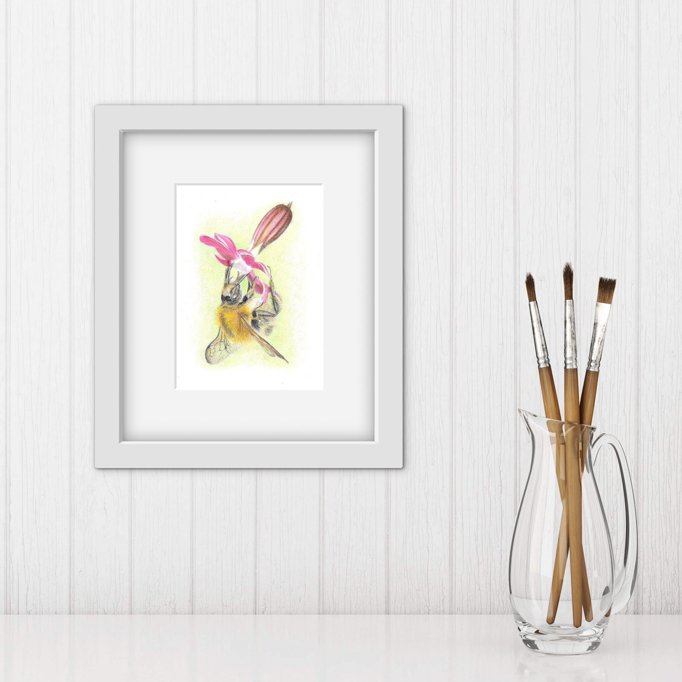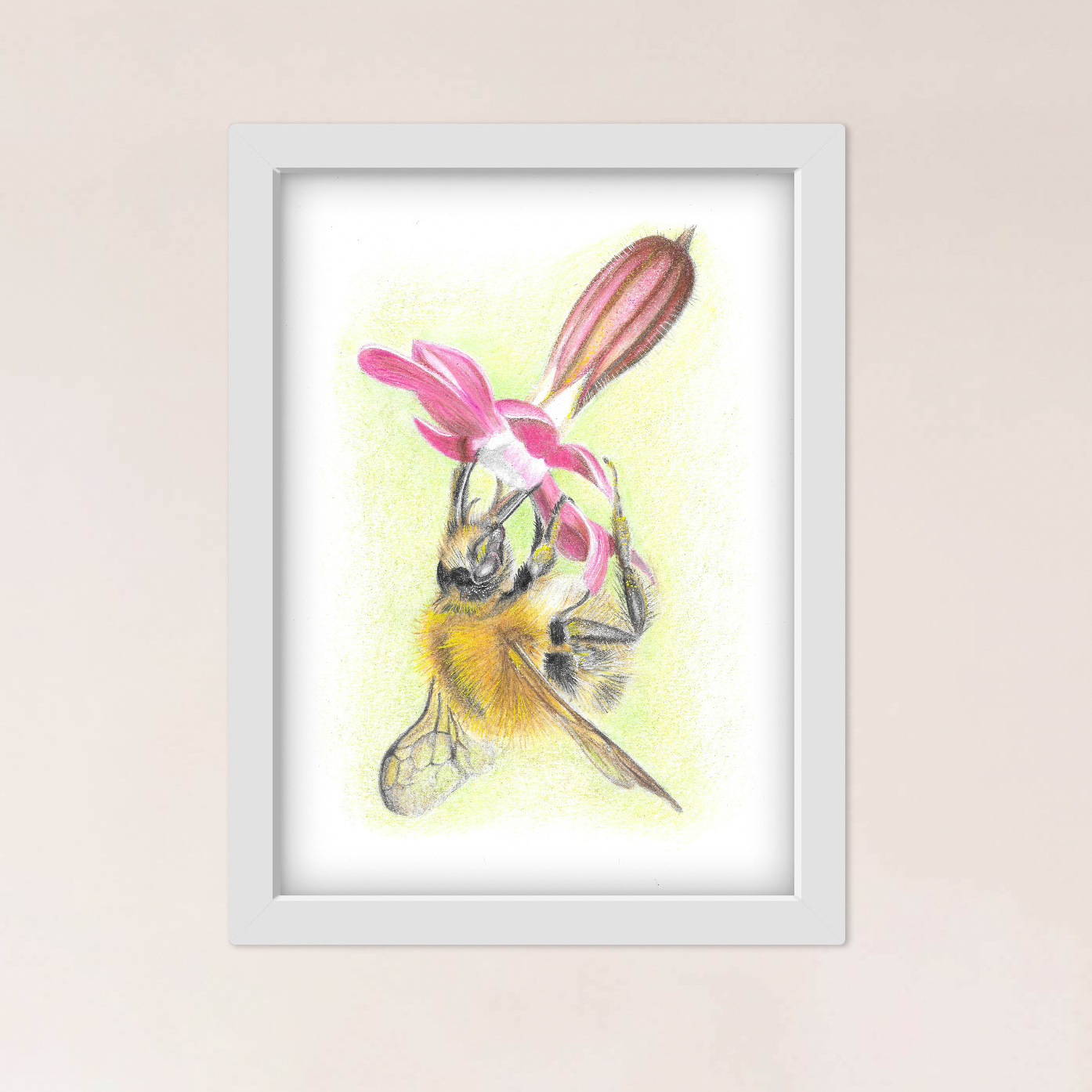 This is a small print taken from my original colour pencil bee drawing. The inspiration for this drawing came from a photograph that I captured in early spring of a bumblebee buzzing around some Red Campion Wildflowers.
