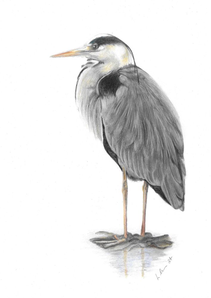 Grey Heron bird 7″ x 5″ print from original colour pencil drawing.