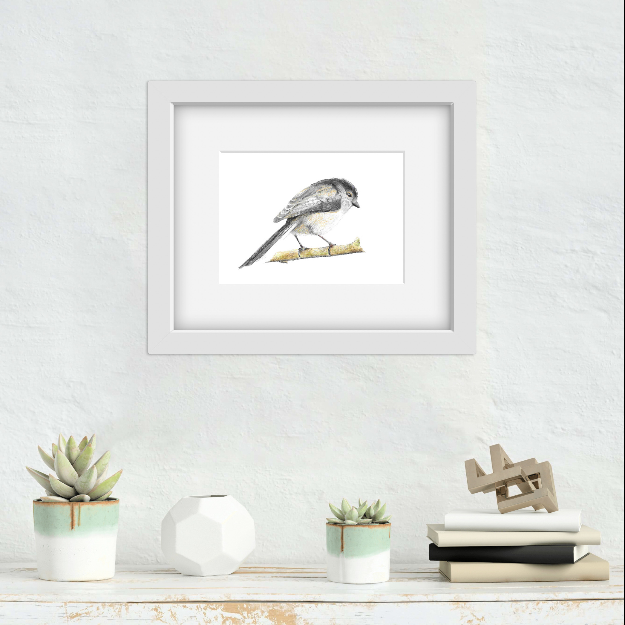 This is a small print taken from my original colour pencil drawing. The inspiration for this drawing came from a photograph that I captured of a Long Tailed Tit on the Camel Trail in Cornwall. One of many that were flying around in a small family group. They don’t sit still for long so I was really happy to capture this photo!