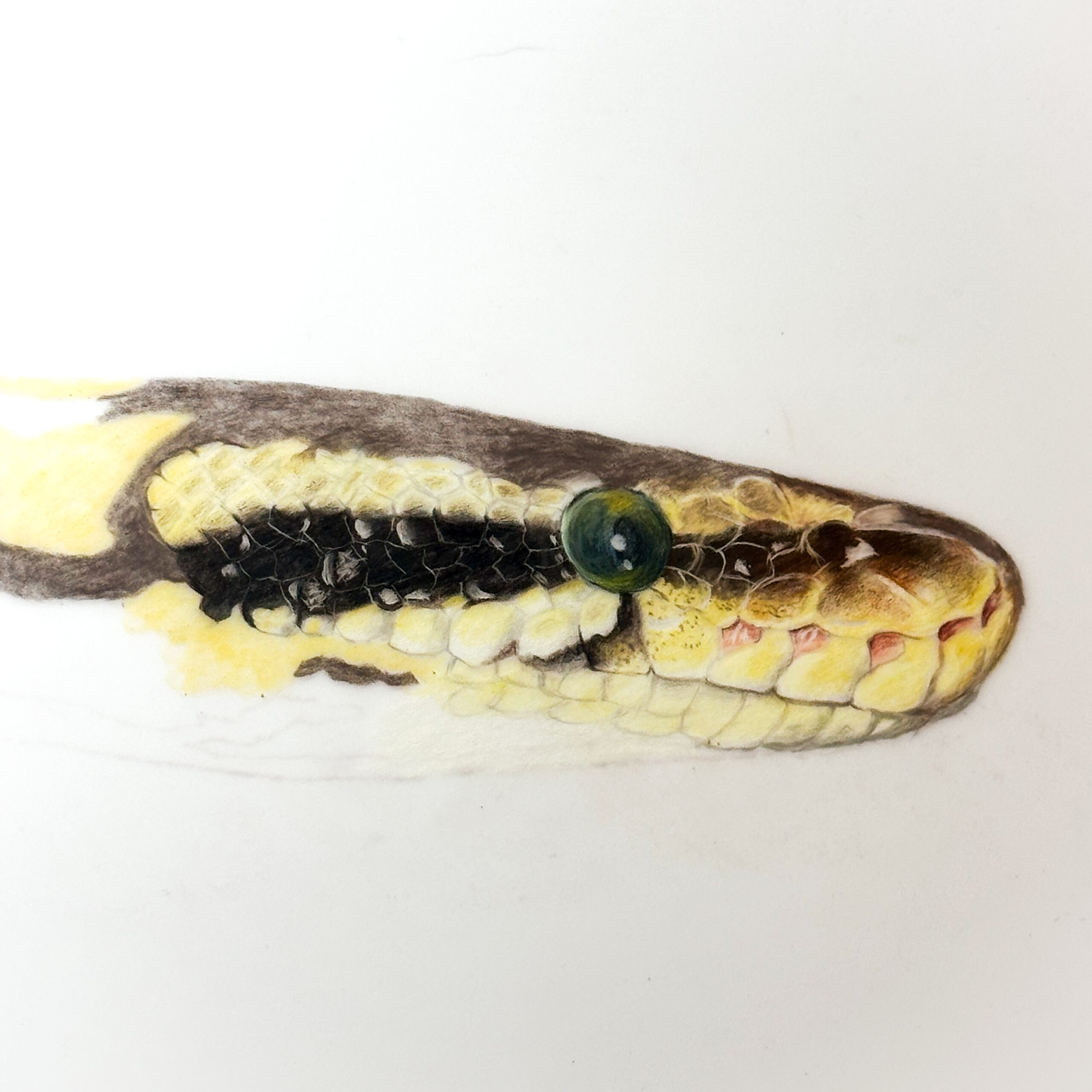 Royal Python Snake card. Reptile 6″ x 6″ greetings card from original colour pencil drawing